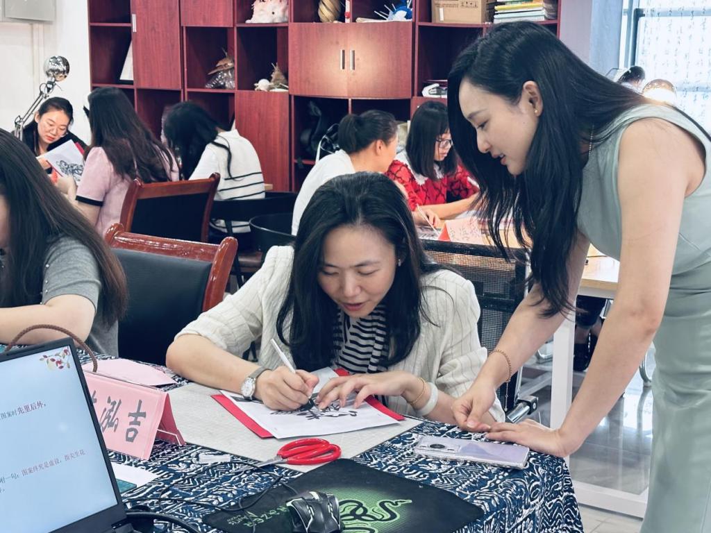 “一纸一剪藏文脉,一刀一刻蕴匠心。”沙龙伊始,设计学院非遗剪纸传承人周福容老师带来了精彩的剪纸教学。从剪纸的历史渊源、文化内涵,到基础技法的演示,周老师细致讲解每一个步骤,手把手指导在场辅导员。大家手持剪刀与红纸,在指尖的翻飞中,感受着传统剪纸艺术的独特魅力。辅导员们全神贯注,在专注创作的过程中,不仅体会到非遗技艺的精妙,更领悟到其中蕴含的耐心、专注与精益求精的匠人精神,而这种精神恰与辅导员“春风化雨、润物无声”的育人理念高度契合。