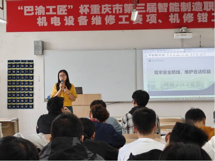 在教育学生维护合法权益方面,主要明晰了合法权益边界,让学生掌握理性维权方法。班会上系统梳理了学生享有的“受教育权”“人身与财产安全权”“申诉与救济权”等核心权益,从“获得公正学业评价”“申请奖贷助勤补”,到“人格尊严不受侵犯”“对处分决定提出申诉”,辅导员结合《普通高等学校学生管理规定》与学校《学生手册》,用通俗语言解读权益内涵与法律依据。针对“权益受损如何应对”的关键问题,班会明确了“五步维权路径”,即“知晓规则”“沟通协商”“寻求帮助”“逐级申诉”“依法维权”。班会特别强调“理性维权”原则,拒绝网络暴力、过激行为等非理性方式,避免矛盾升级。此外,班会还围绕“权利与义务统一”展开讲解,指出学生在主张权益的同时,需履行“遵守校纪校规”“尊重他人权益”“维护校园安全”等义务——包括防范电信诈骗、遵守实验室规程、保护个人信息、抵制境外渗透等,引导学生既做“权益的维护者”,也做“安全的守护者”。