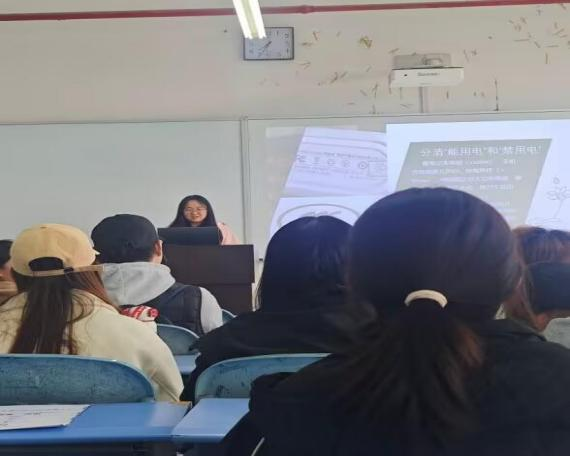 现场协会宣传委员以“案例剖析+隐患展陈”,结合高校违规用电案例讲解危害与防范要点,解读寝室“用电禁区”清单,说明功率限制、禁用电具等;还开展插排甄选实操,对比优劣插排差异,传授插头插拔、线路检查等技能,引导学生从源头避风险。