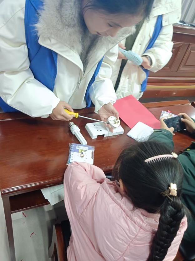 “活力能量站”前小朋友们排起长队,志愿者化身“科普小老师”,用趣味讲解+实物演示的方式,教大家基本用电常识。志愿者还拆解并清晰展示开关结构与工作原理,结合提问互动帮小朋友理解“按下开关通电、松开断电”的简单逻辑,用生动易懂的方式筑牢安全用电第一道防线。