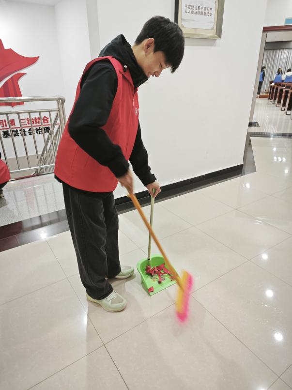 活动当天,志愿者团队兵分三路高效服务。上午9时,“便民能量站”率先行动,志愿者持清洁工具对社区楼道、绿化带、垃圾投放点等区域全面清扫,清除杂物与死角污渍,还示范垃圾分类方法,倡导文明理念,让社区环境焕然一新。