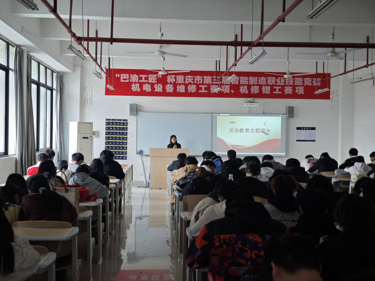 “从出生起,宪法就赋予我们受教育、人格尊严等基本权利,它不仅是国家的根本法,更是我们青春成长的‘导航仪’。”在“法治中国 从我做起”主题班会现场,辅导员以宪法精神为切入点,结合校园生活实际,系统讲解法律的“边界意识”。班会中,师生共同梳理校园内易触碰的法律红线,知识点搭配真实案例,让抽象的法律条文变得具体可感。针对“校园贷”这一高频风险点,班会还特别强调合法利率上限,并明确举报途径,引导学生树立“学法知边界,守法护权益”的法治观念。各班还通过“法治承诺书”签署环节,让学生以书面形式承诺“不传播隐私、不参与欺凌、不造谣传谣”,并鼓励大家从“守法者”转变为“普法者”,向家人朋友分享法律知识,让法治意识融入日常。