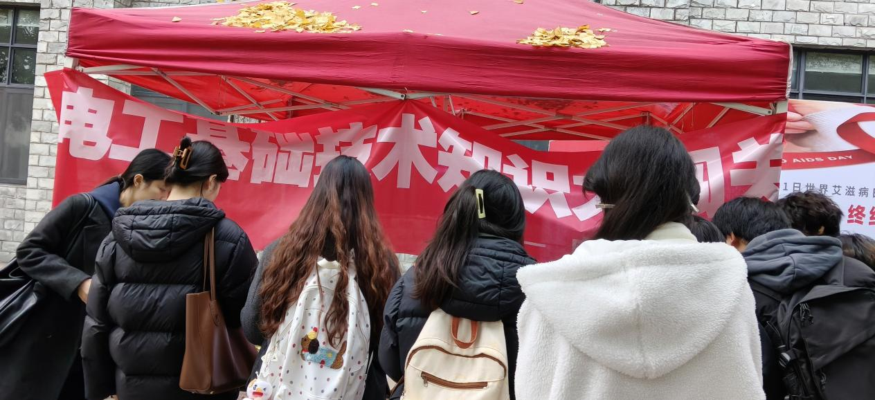 为普及安全用电知识,提升学生实践技能,我校电气工程学院智能装备竞技社与电器维修社于12月8日在一食堂门口共同举办了“‘电工基础技术知识大闯关,安全用电头号玩家’主题活动”。本次活动以线上扫码答题为主要形式,融合了电工知识科普与趣味竞赛,吸引了众多同学驻足参与,累计参与人数948人。