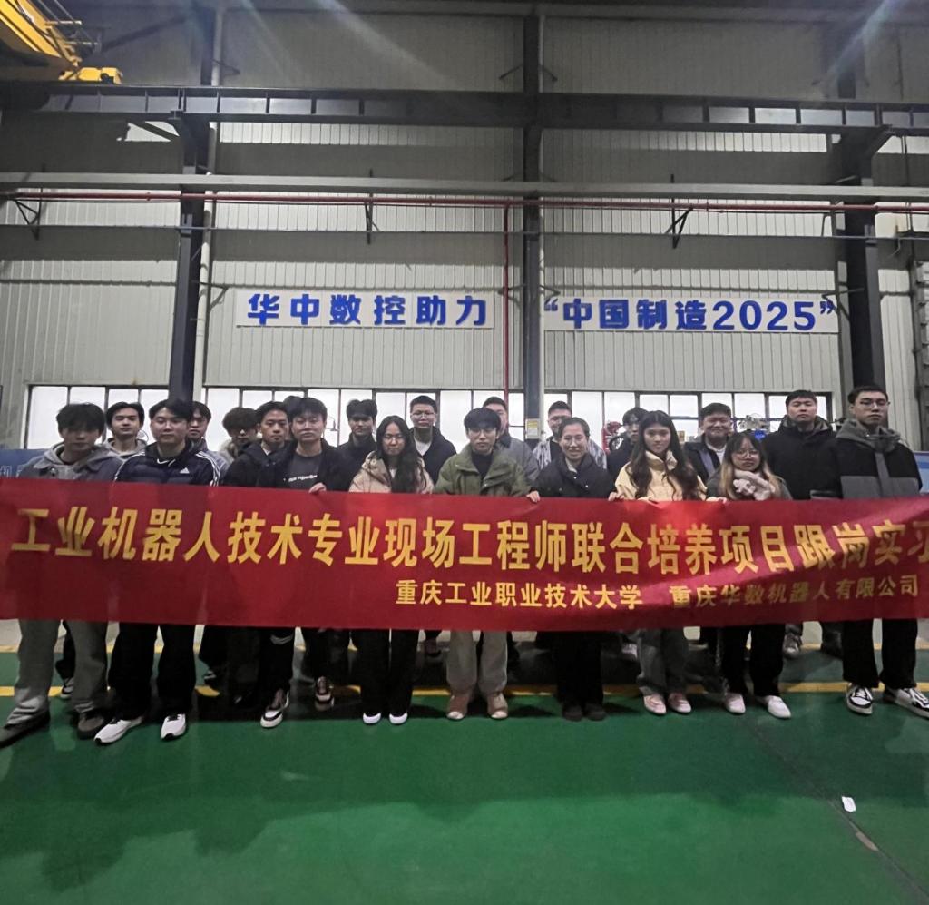 重庆工业职业技术大学电气工程学院与重庆华数机器人有限公司已连续两届合作开展现场工程师培养,逐步建立起“课程共建、师资共培、基地共享”的产教融合机制。该项目注重培养学生解决现场复杂工程问题的能力,旨在输送“精操作、懂维护、能管理”的复合型技术技能人才。 此次跟岗实习是校企协同育人的一次扎实落地。双方表示,将继续深化合作,优化培养路径,共同为智能制造领域培养更多高素质现场工程师。